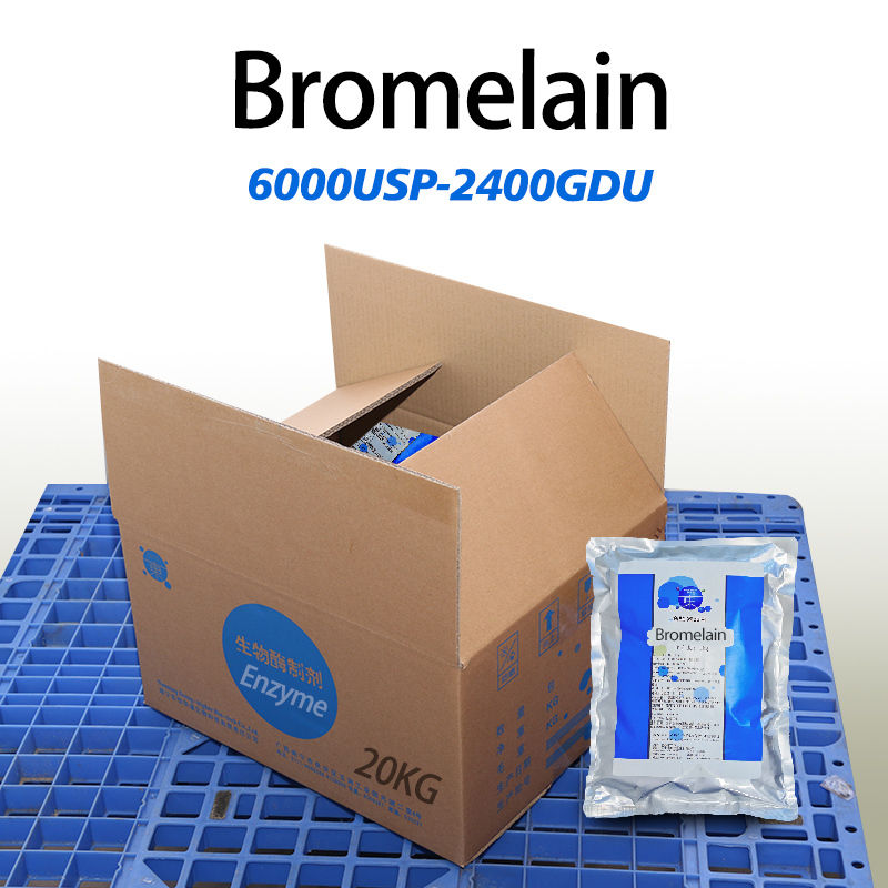 Bromelain, CAS-Nummer: 9001-00-7, weißes bis hellbraun-gelbes amorphes Pulver. In Wasser gelöst, ist die wässrige Lösung farblos bis hellgelb. Frische und saubere Restmaterialien wie Ananas-Schalen, -Stacheln und -Kerne mit einer Saftausbeute von über 45 % werden entnommen, gepresst und der Saft wird herausgefiltert, um Fruchtstücke zu entfernen. Nach dem Pressen, der Extraktion, dem Aussalzen, der Trennung und dem Trocknen wird das Produkt erhalten.