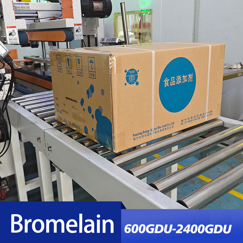 Bromelain diekstrak dari komponen seperti jus dan kulit nanas, dan muncul dalam warna kuning muda atau cokelat muda.Aktivitas enzimatiknya dapat dihambat oleh paparan unsur logam beratEnzim ini benar-benar larut dalam air, dan mekanisme utamanya adalah memecah protein molekul besar menjadi peptida kecil dan fragmen peptida berat molekul rendah. |