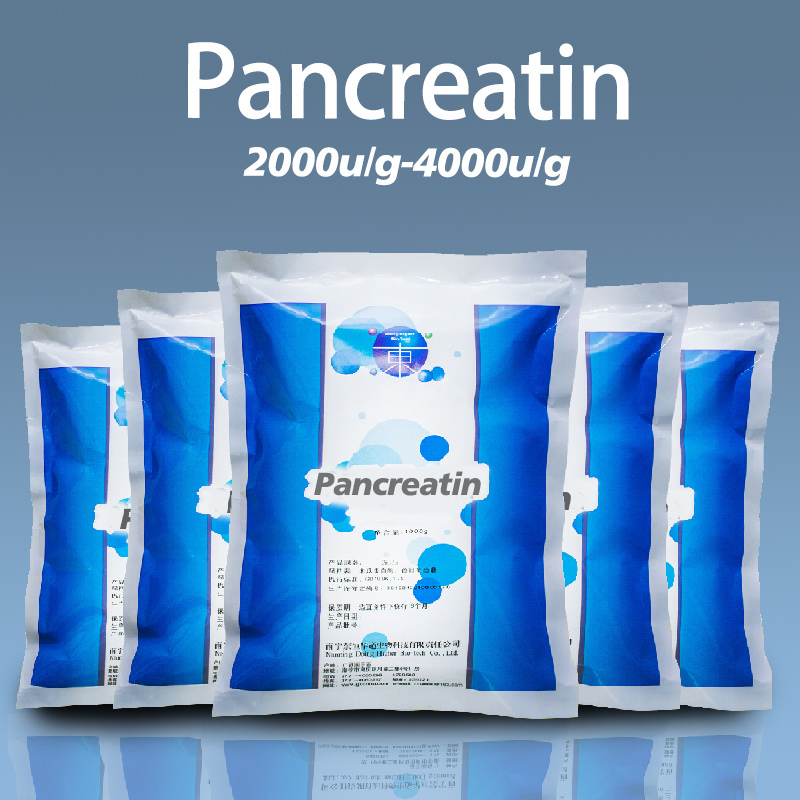 Pancreatic enzymes are mainly extracted from pig pancreas and are a complex enzyme composed of pancreatic amylase, trypsin, and lipase. Under certain temperature and pH conditions, they can hydrolyze large protein molecules into peptides, amino acids, and other products. Suitable for industries such as food processing, protein and peptide production, feed additives, and pharmaceutical raw materials. China is a major producer of live pigs. With its resource advantages, biological adaptability, and mature industrial system, precise control of every process ensures that it is transformed from natural organs into safe and effective enzyme preparations, fully meeting the procurement needs of pancreatic enzymes. Food Industry: Production of functional foods by breaking down macromolecular proteins into easily absorbed small-molecule peptides or amino acids. Pharmaceutical Raw Materials: Pancreatic enzymes serve as the core component in various digestive aids and can be combined with other ingredients to form compound formulations. Feed Industry: Enhances the digestibility of proteins and starch in feed, promoting growth in livestock and poultry.