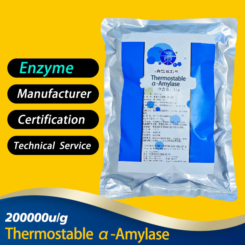 Thermostable Alpha Amylase ผลิตโดยการหมัก สกัด และกลั่นจาก Bacillus licheniformis มีคุณสมบัติทนต่ออุณหภูมิสูงได้ดี ใช้กันอย่างแพร่หลายในอุตสาหกรรมแป้ง (กลูโคส, มอลโตส, เดกซ์ทริน, ฟรุกโตส, โอลิโกแซ็กคาไรด์), แอลกอฮอล์, เบียร์, ผงชูรส, การผลิตอาหารหมักดอง, กรดอินทรีย์, สิ่งทอ, การพิมพ์และย้อมสี, การทำกระดาษ และอุตสาหกรรมการหมักอื่นๆ สามารถไฮโดรไลซ์พันธะ α -1.4 ไกลโคซิไดก์ในโมเลกุลแป้งได้อย่างรวดเร็วที่อุณหภูมิสูง ตัดเดกซ์ทรินสายสั้นที่มีความยาวแตกต่างกันและโอลิโกแซ็กคาไรด์จำนวนเล็กน้อย ทำให้ความหนืดของแป้งลดลงอย่างรวดเร็ว ระยะเวลาการทำให้เป็นของเหลวนานขึ้น และจะผลิตกลูโคสและมอลโตสจำนวนเล็กน้อยด้วย อุณหภูมิการทำงานที่เหมาะสมคือสูงกว่า 90 ℃ โดยมีการทำให้เป็นของเหลวอย่างรวดเร็วที่ 95-97 ℃ และมีชีวิตชีวาอย่างมากที่ 100 ℃ ในระหว่างการฉีดของเหลวในช่วงแรก อุณหภูมิชั่วขณะสามารถสูงถึง 105-110 ℃ ช่วง pH: ช่วง pH ที่มีประสิทธิภาพคือ 5.5-8.0 และช่วง pH ที่เหมาะสมคือ 5.8-6.5 |